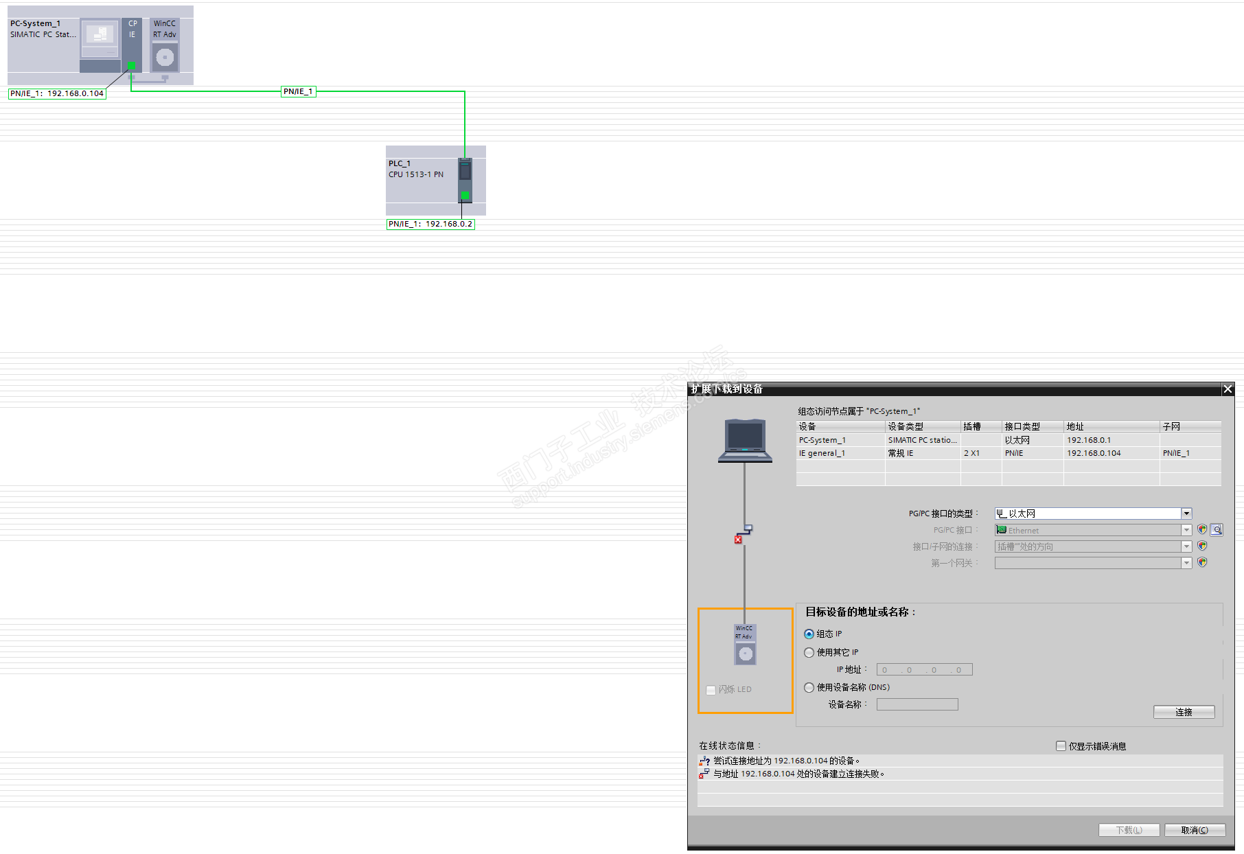 wincc ADV设置的IP也是:192.168.0.104 这样操作对吗?请指导一下。