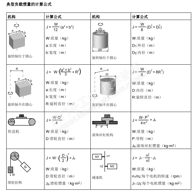 对于不同类型负载的转动惯量计算公式,可以参考V90 操作手册当中的内容: