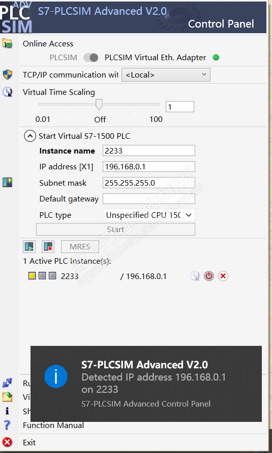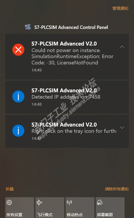 文中指出需要用管理员身份运行,不过是英文可能不方便大家观看,我也在我这台电脑上尝试了一下,确实是可以的.但是我在很多S7-PLCSIM ADVANCED的仿真程序教程里这一步普遍都是双击打开,就可以直接使用,并未遇到我安装后的错误代码.可能真的和版本有关系.