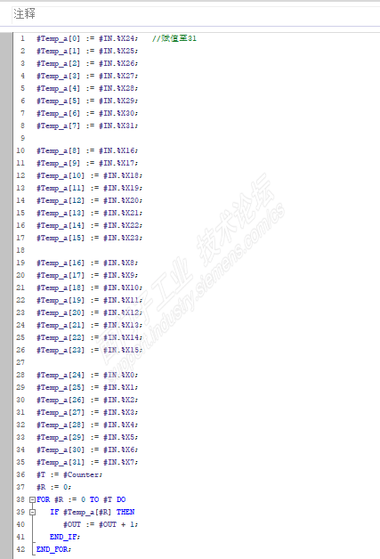 附图,需要对设备的故障数量进行统计的网友可套用。数量刚好一个字(32个位)。可以方便灵活的在COUNTER处更改位的数量。