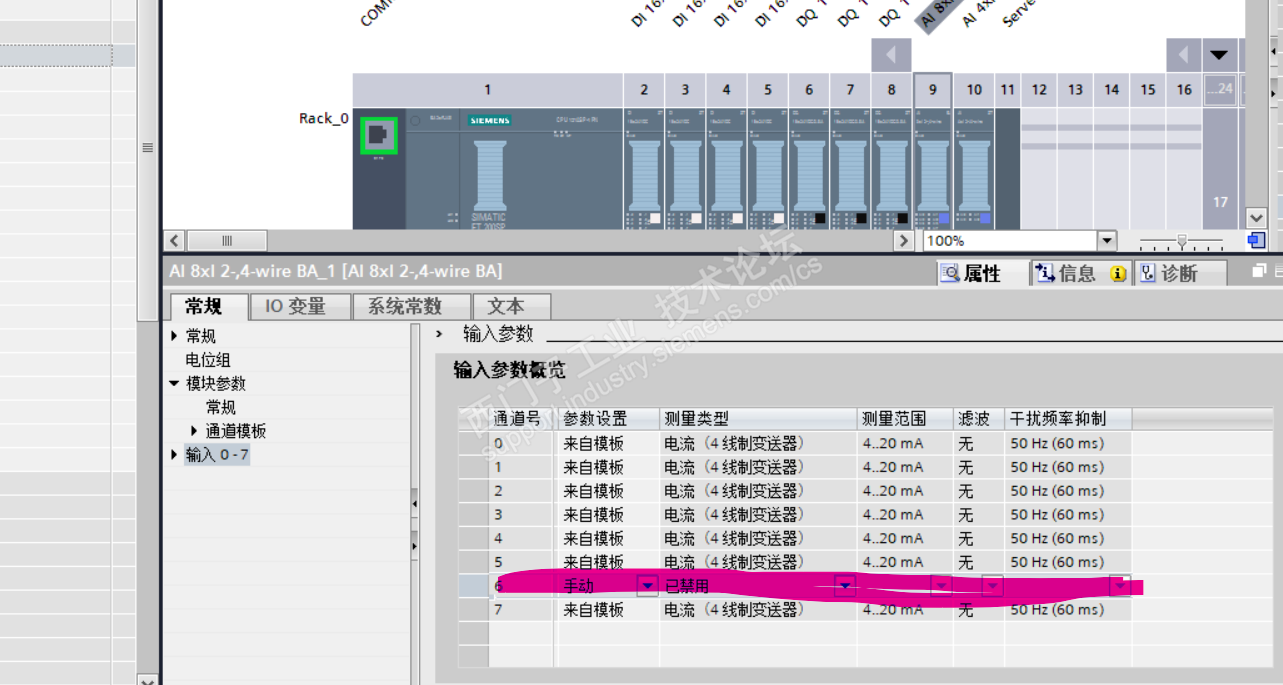 另外,想了想,通道诊断可以设置开着。把不用的通道禁用。明天现场试一下。