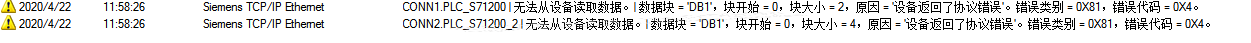 2. 如果使用固件版本为 V4.0 以上的 S7-1200 CPU,则需要如下额外设置,才能保证通信正常。点开 CPU 的设备组态,"属性->常规->保护"里"连接机制"一项需要勾选"允许从远程伙伴(PLC\HMI\OPC\...)使用 PUT/GET 通信访问"。----------这个也已经选了,但还是不行。