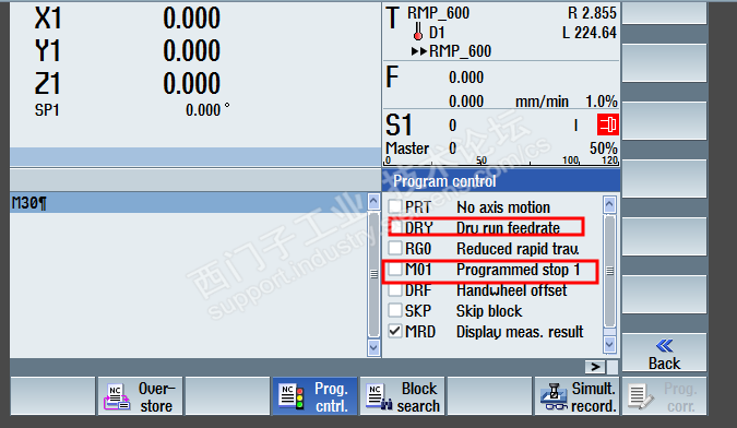 在“程序控制”里有“DRY”“M01”两个勾选项,如何把这两个功能关闭掉,就是勾选了也不能用