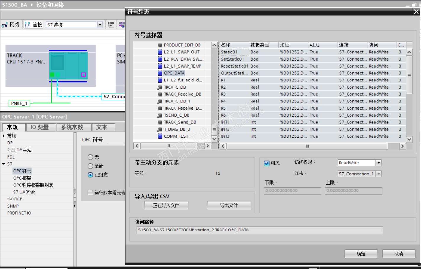 其中pc station中的IP地址跟本电脑IP相同(相当于把本电脑当成PC STATION),跟PLC为同一个网段,而且PLC属性里勾选了允许PUT/GET通讯访问,PLC这边下载,plc在线都正常,就是等到下载PC STAIOTN 这边后就是访问不到目标设备,后面的步骤就没法继续进行了。