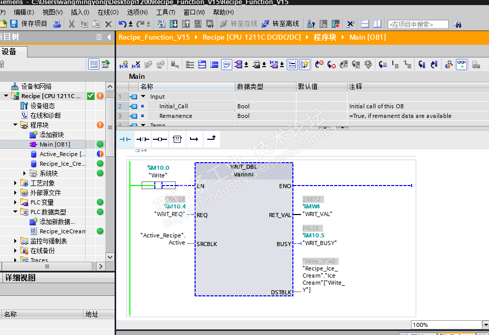 西施,关于课本给出的配方例程,只是为了说明过程,如果需要达到在PLC上仿真还得完善程序是吧?例如write_Y的赋值等等。