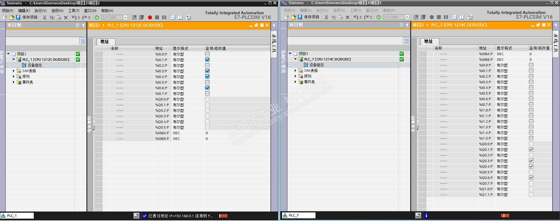 您这个不行的话,恐怕需要把您的项目发给我这边试一下,包括您说的BOOL数组时灵时不灵,以及80C3的报错,此外您需要告诉我您是使用2个真实CPU还是PLCSIM的两个实例