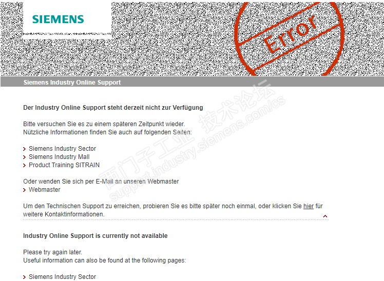 各位,遇见过这种现象吗西门子全球技术资源下载时出现这个界面是怎么回事?好几天了,刷新也不行,是咋回事啊?