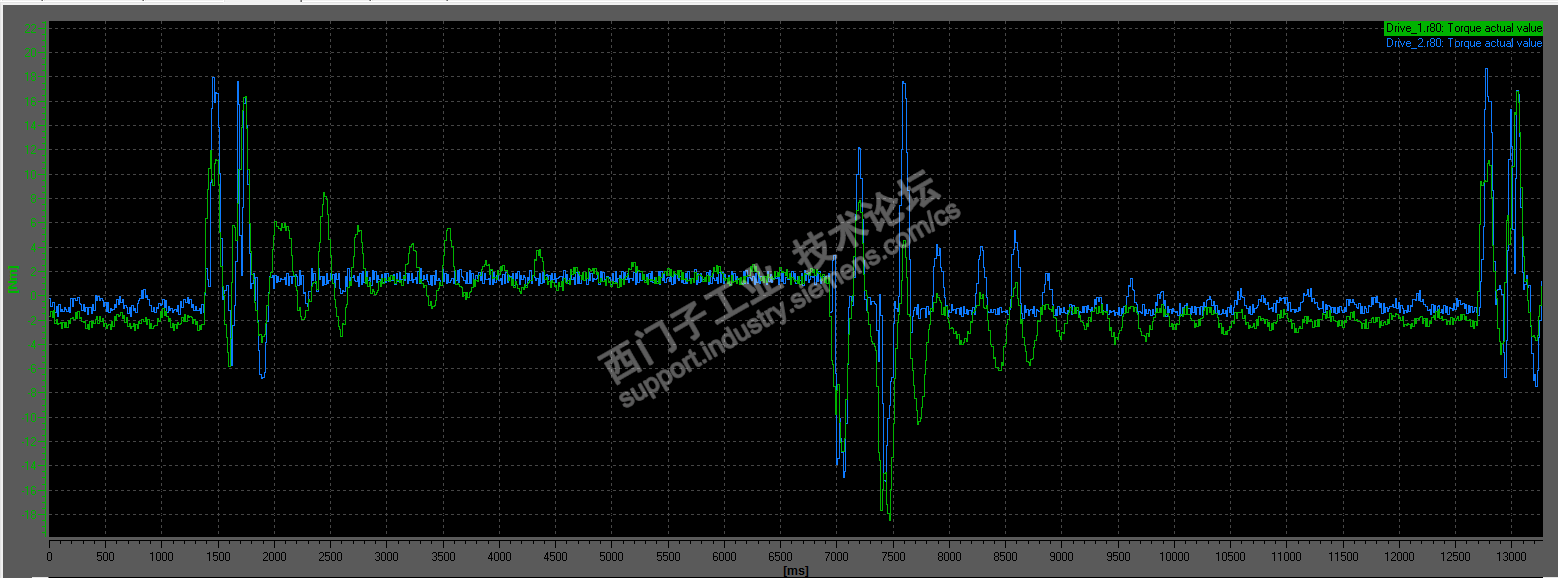 现在问题是: 启动停止过程中抖动比较厉害,负载的分配不是特别好。都是伺服控制不是矢量控制,没办法激活软化功能。