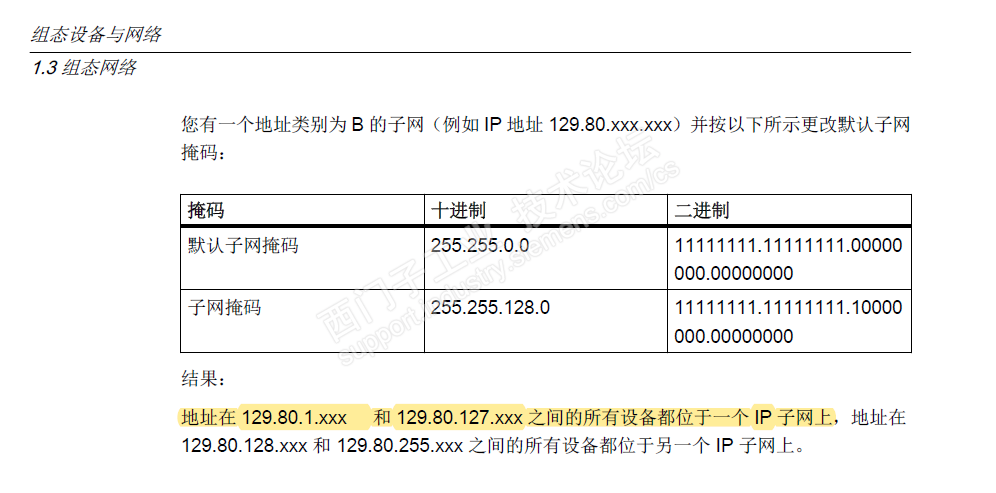 STEP 7 Professional V16系统手册上有个IP地址和子网掩码示例: