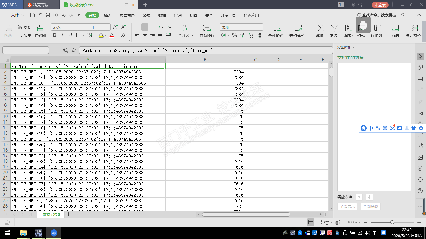 精智面板做数据记录时,把数据记录在U盘中时会把数据名,时间,时期和数据等等都放在一个单元格中,而仿真的时候却不会!附图,请各路大神指点迷津