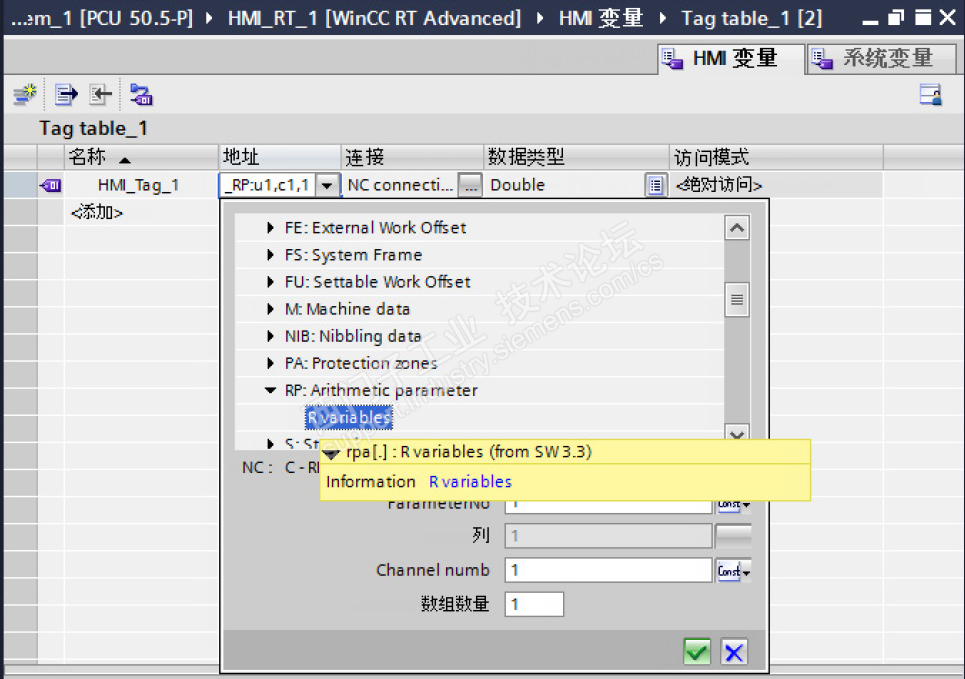 肯定的,其实最后就是WinCC读取SINUMERIK内两维数组的问题,但是我看手册了,老外是专门对SINUMERIK做了说明和测试的,400把问题转德国方面,目前也没有明确判断,只是需要进一步提供信息,过两天我准备试试用WinCC读1200内的两维数组看看