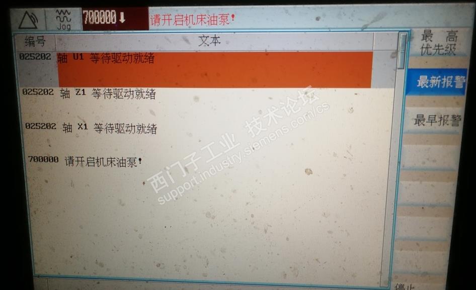 公司一台车床运行中故障停机,出现三轴同时等待驱动就绪的报警(见图1)