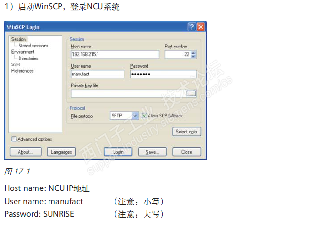 Step3:非常重要一步,上电后不能让NCU进入Operate,否则无法进入boot界面,进而无法还原CF镜像,正确方法是NCU上电后再启动画面中按下‘3’,系统进入桌面;PC连接X127口,使用WinSCP软件连接NCU,如下图