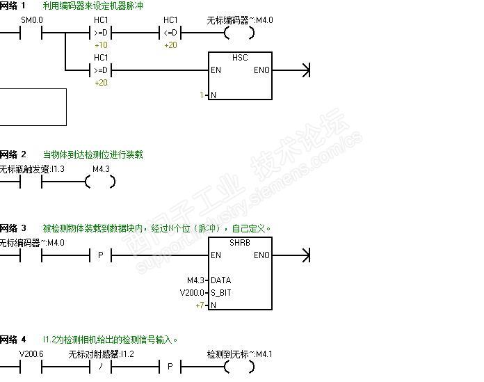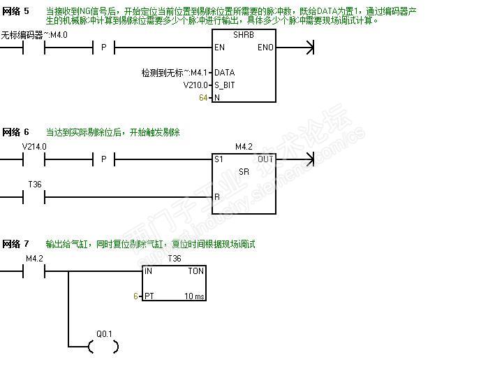 设计思路:当被检测产品到达检测位后,感应器触发工业相机,同时给信号给PLC告知PLC程序物开始进入检测区域,工业相机从拍照到检测输出结果需要在10-50ms之间,当工业相机给出NG信号后,需要剔除的产品开始装载到剔除数据位,产品达到剔除位置后,剔除气缸开始执行动作剔除。