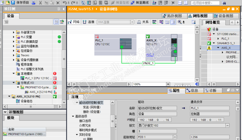我用的是1215C控制器与S210单相驱动器,通过PROFINET连接,由于1200PLC没有IRT等级,所以报文选择的是102,程序下载后,显示PLC下位组件错误,无法访问S210驱动器。