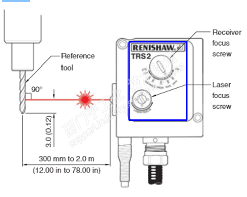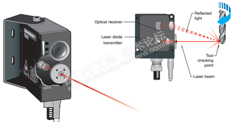 检测部分用的是雷尼绍的TRS2非接触式的断刀检测机构,实际位置安装在刀库侧方,有刀库盖板保护,下图是检测示意图,摘自雷尼绍官网。