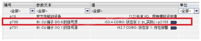需要将变频器的输出端子18、19、20设置为到达一定速度(比如1200r/min)后其触点动作,将p730=53.4(实际值大于转速阈值p2155),如上图所示,需要设置p2155=1200r/min,在startdrive软件中找不到p2155这个参数。是怎么回事?还是我理解的有问题,请高手指点。