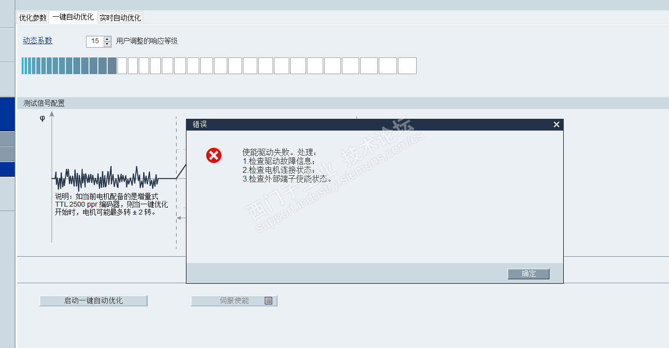 就是这样的问题,优化到一半就跳出来这个东西,然后我换了一个同意的负载在另一个设备上测试也是这样,老师难道是负载的惯量比的问题导致优化失败的嘛