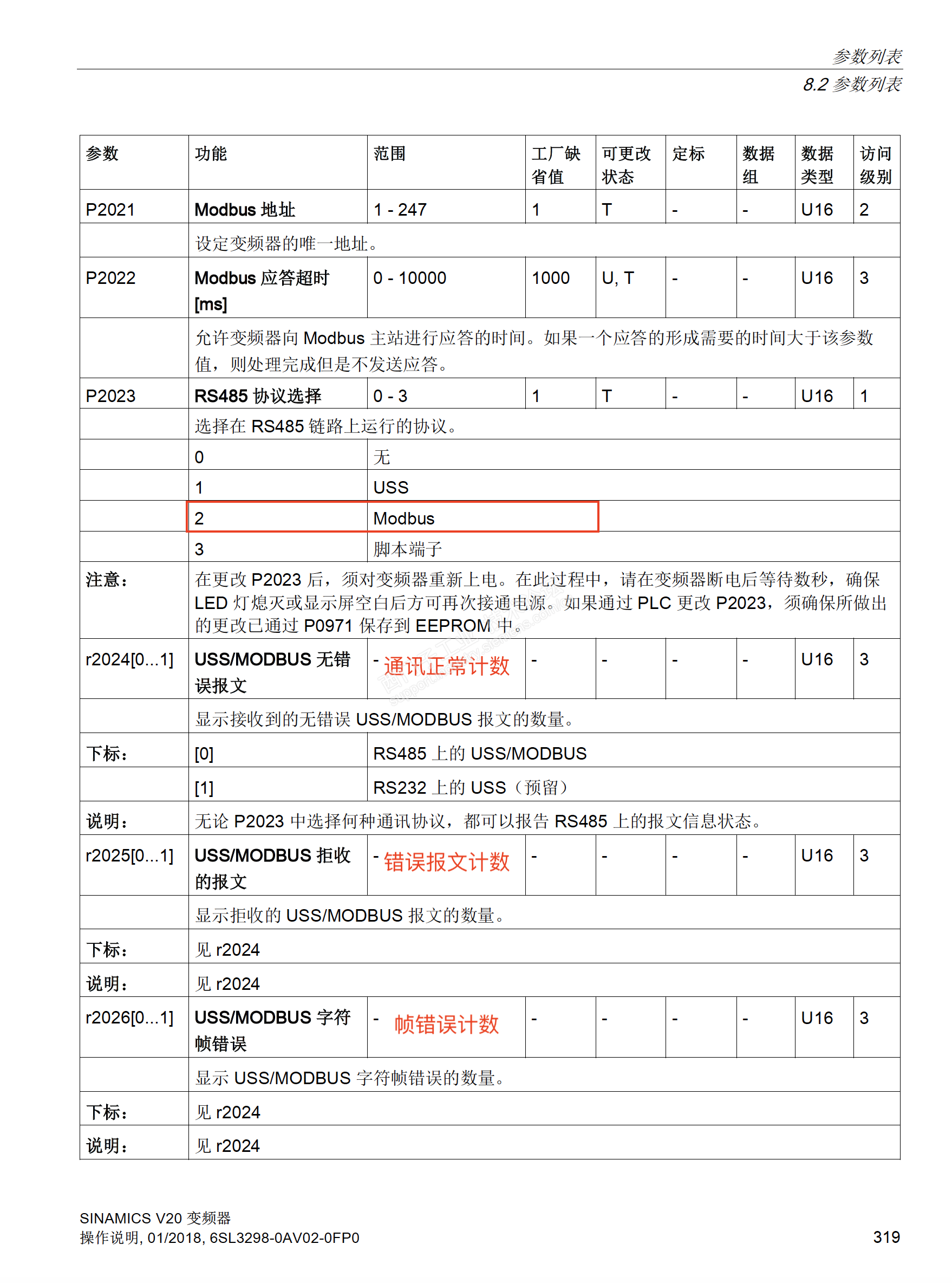 然后通讯,查看参数202x的那几项(485接口诊断)看看是哪里的问题。