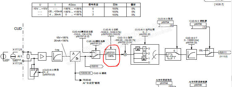 6RA80系列我改P50701这个参数,CUD模拟量输入类型要改一下。