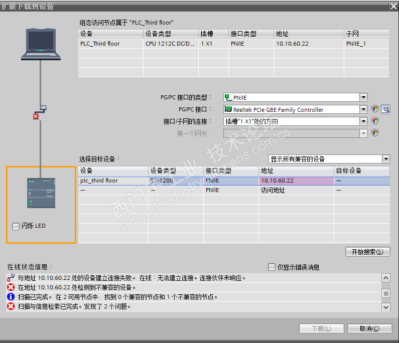 我将四个PLC和HMI做在一个工程项目里面,将HMI网络通讯组态下载后,再向PLC下载程序就下载不了能扫描到一直提醒不兼容。