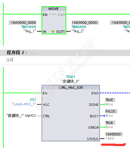 哪怕只使用CTRL_HSC_EXT指令写个程序,CTRL_HSC_EXT指令也报80D0错误。