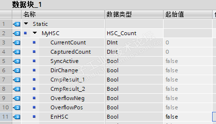 我是最简单的实验,启用HSC1计数器,单向计数,I0.0接了个编码器的A输出,编码器电源与PLC使用同一个24V电源。ID1000也看不到有计数变化,始终是0。