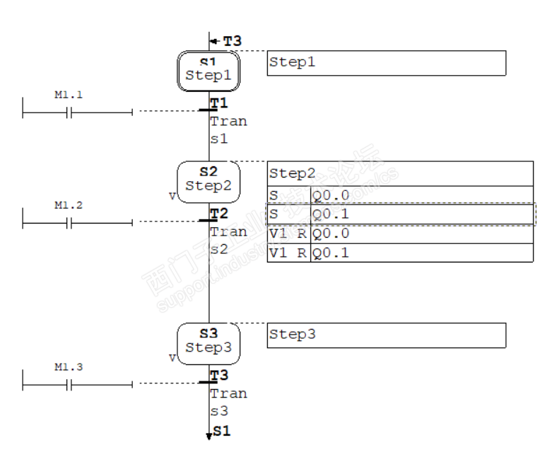 如图所示,当S2监控条件满足时,Q0.0的状态是1还是0? 按我理解S2监控条件满足后执行V1 R后,Q0.0应该是0状态,但实际测试后发现是1状态,请问是为什么?
