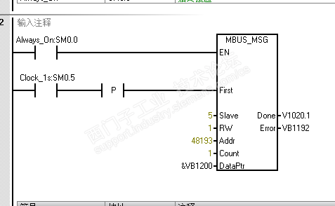 用200SMART 和变频器做modbus通讯时,MBUS_MSG指令出现103的错误代码就是从站不支持数据类型;