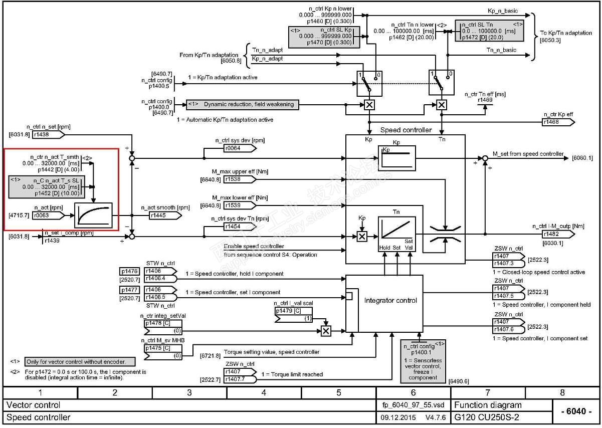 根据我的经验,你如果调节P1470或者P1460都不起作用,那这个转速震动问题,就不在速度调节器的参数设置上了。一定现场还有其他原因导致转速的震荡。要查现场的其他问题,比如说电磁噪声的扰动,比如说机械上的问题等等。因为调节PI参数,一定会有明显的反应,才说明是参数设置和优化的问题。否则,就是外围现场的问题了。