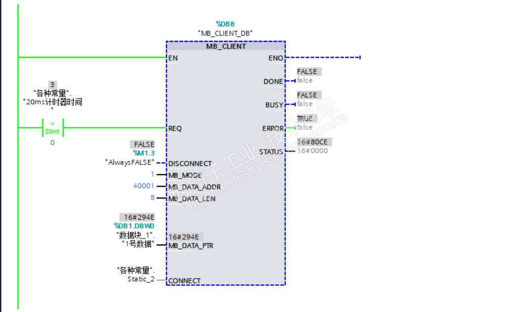 MODBUS TCP 1200通讯提问,在按照教程流程走完后,提示出80CE错误,文档显示文本地端口IP地址为0.0.0.0,请大家帮助一下,主要是看着都换成1200了,这次也用1200做一下,那知道一上来通讯就出问题,谢谢大家回答一下