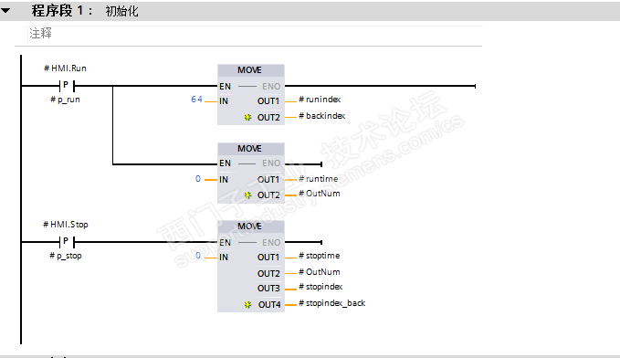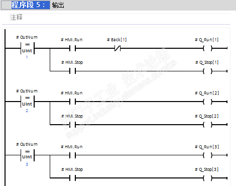 由于PLC程序比较简单总共分为6个程序段,就截图分享。上位机控件部分由于不同的应用场合会有所不同,就不再分享了。