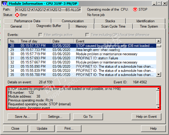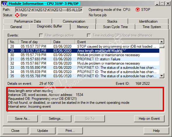 公司有几套PLC,没有网络故障时,一直运行正常。但是在网络闪断时,CPU会进入停机状态(编程错误),直接暖启动后又恢复正常运行。这个现象很怪异,为什么正常运行时,不能识别到编程错误(错误程序一直在调用),非要网络闪断时才能被发现。