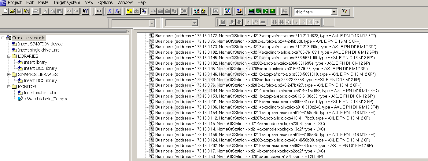现场有一台设备用的S120,想用simotion scout将项目上载上来,搜索出来的节点都是??,无法选择确认是什么原因,现在是用网线连接到交换机上搜索的,需要直接查到S120上上载吗?