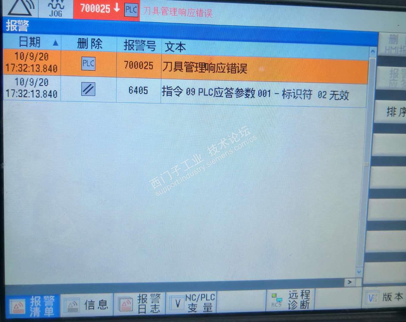 828D钻攻机d在tsm界面输入刀号换刀正常,加工中自动换刀也正常,但在测量刀具/手动长度界面时,输入刀号换刀时出现换刀错误,刀盘能旋转到目标刀号,但Z轴不会往下半装刀,停在此处,出现下图错误,怎么解决?求帮助,谢谢!