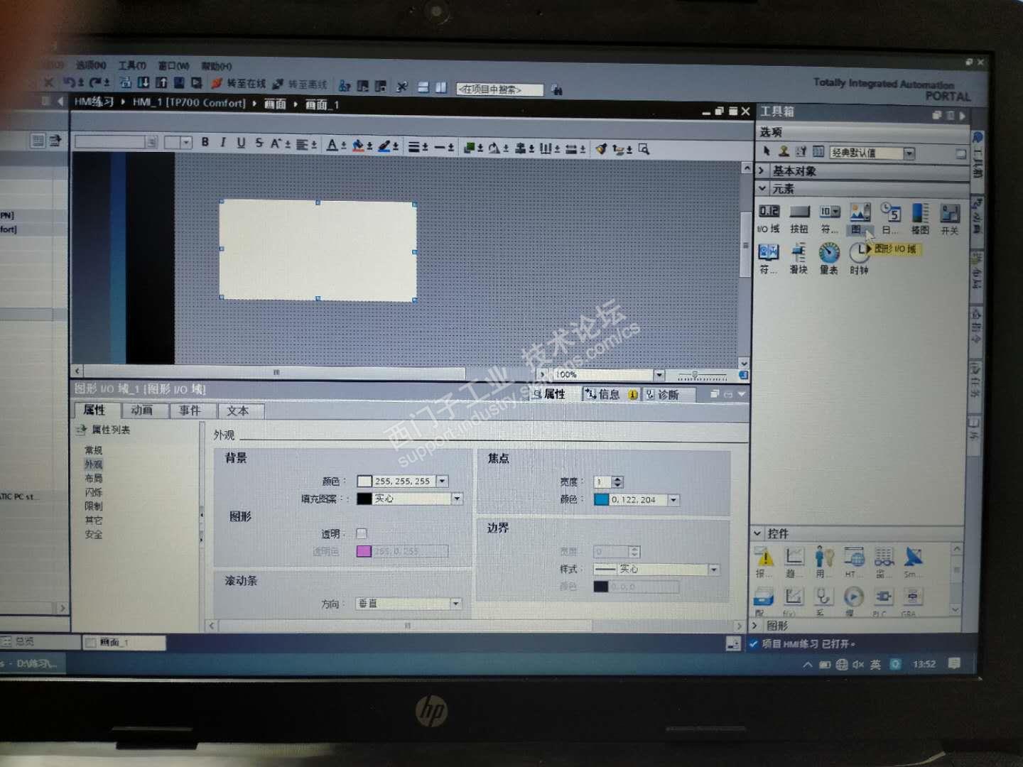 大家帮我看看,图形I/O域右侧边上的这个滚动条怎么不出现了呢?我用的是博途V15 PRO.。练习编辑精致面板画面时出现这种情况。好似前段时间有滚动条的。