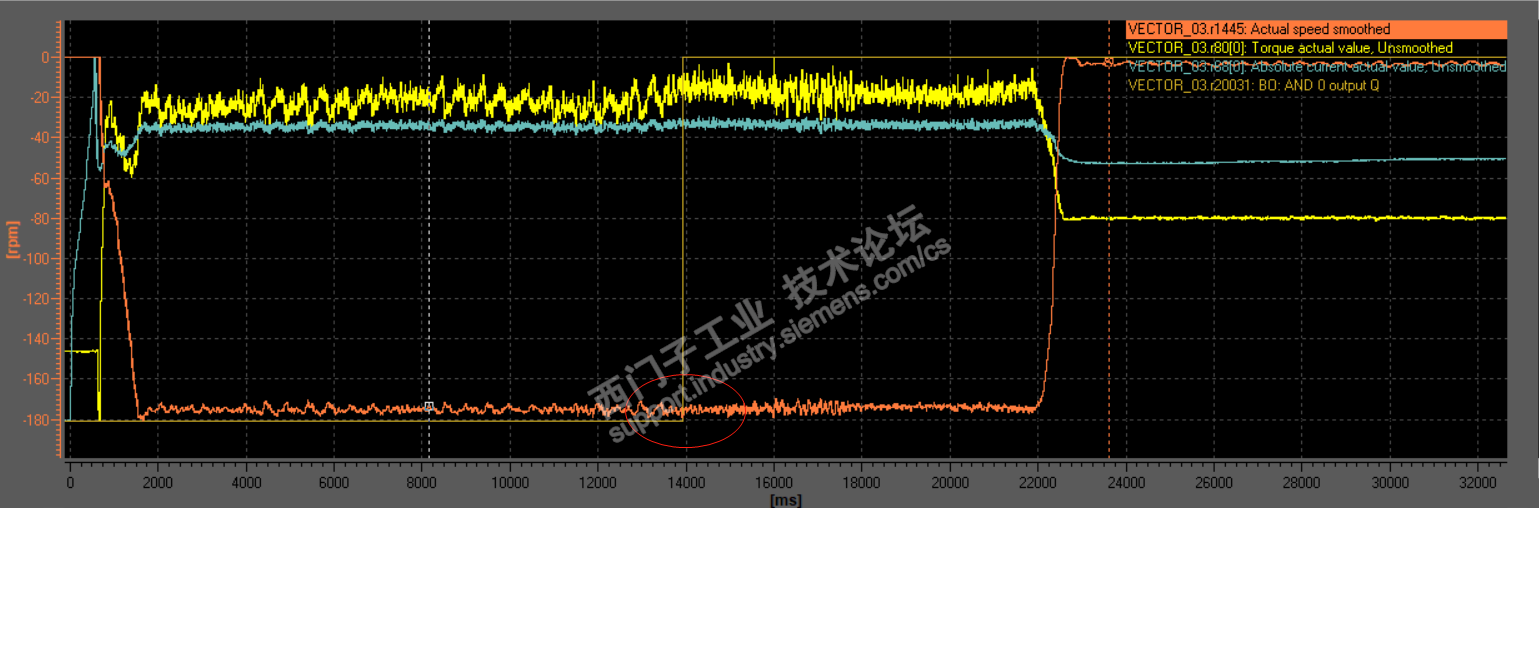红圈前为放尺的速度控制,红圈后切换到转矩控制。