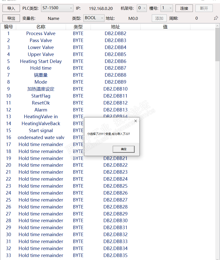 4. 支持导入导出csv文件,导入时也会判断变量类型、地址、和PLC类型是否匹配,导入前请先选择好PLC类型