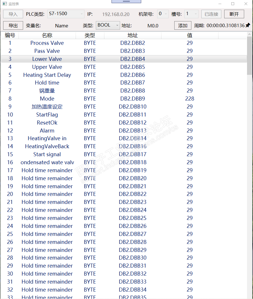 2. 支持基本的数据类型监控:bool、byte、int、word、dint、dword、real