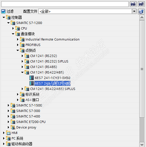 另外一个程序在硬件组态上多了一个 CM 1241 RS422/485模块订货号:6ES7 241-1CH32-0XB0,就打不开了。我看了一下硬件目录,在目录里有这个硬件选项。这是为什么呀?