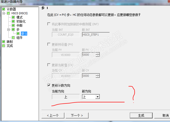 高速计数器可以在初始化或者运行中更改设置,如初始值、预置值。其操作步骤应当是: