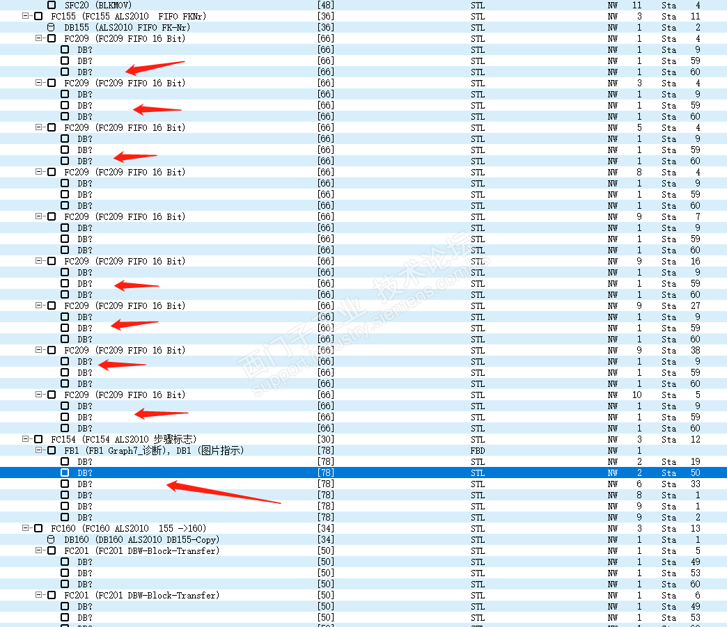 设备的程序中FC块 调用多个DB数据块,怎么看他调用的是DB几