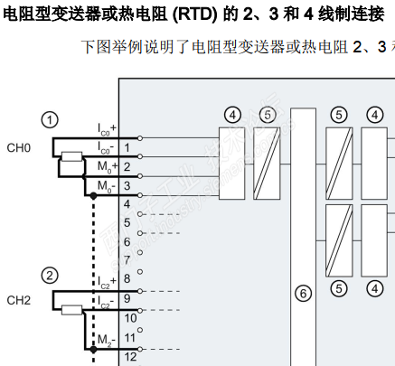 请问模拟量输入模块(AI 8xU/R/RTD/TC HF 6ES7531-7PF00-0AB0) 如果接3线制PT100温度传感器,端子10和12哪个接PT100的电源负,哪个接信号?