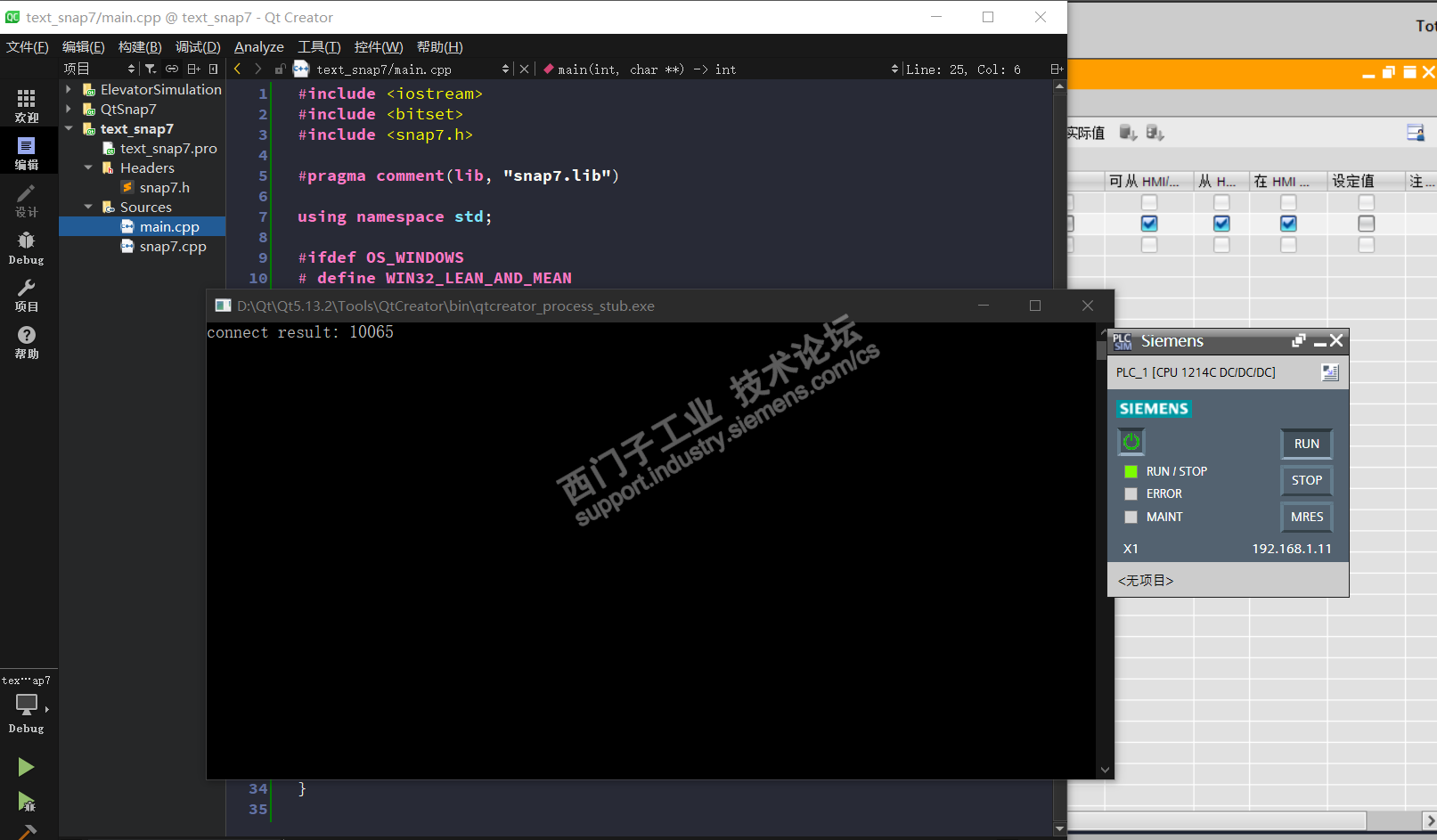 尝试了用c++结合snap7库写了个连接博途仿真出来的PLC,结果没连接成功,现在还没怎么搞明白。。