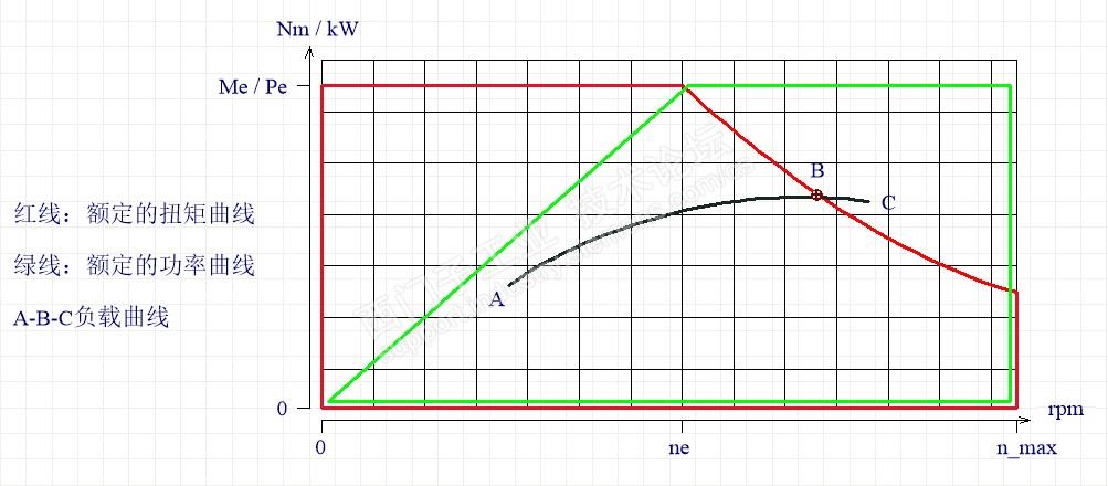 弱磁以后,只要不是B-C负载曲线超出电机曲线以外,恒转矩控制就是可以的。