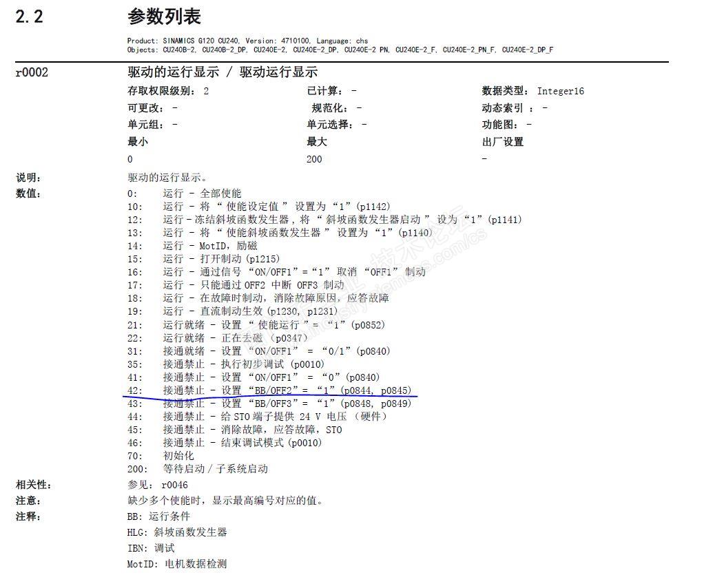 G120上电合不上闸,启动不了。直接看r2的值,然后根据它的注释,看r46的值,即可知道问题在哪了。另外r899状态也要参考。三方对症,即锁定原因。