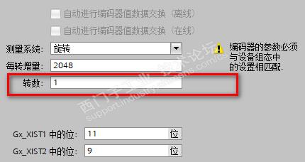 无论设置为“绝对值”或者是“循环绝对值”类型。只要“转数”这个字段为1,轴的速度上升到15000°/s,都会出现上诉问题。如果把“转数”改大,比如改成2,轴的速度可以到30000°/s(使用虚轴测试过),超过后也会出现问题。选择增量编码器不会存在这个问题。