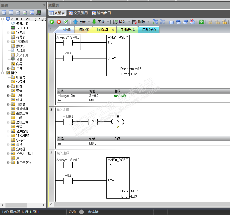 求帮助解决问题smart组态2轴完成后,用控制面板测试没有问题,转入运行模式,轴一可以回原点。轴二报错4,附程序 2.5版本微信图片_20201104111818.png