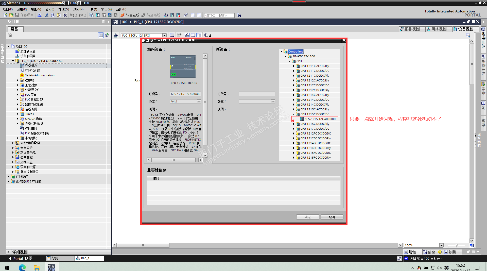 前段时间一直用的好好的,近期突然出现了这种情况,更改PLC -CPU型号时,只要选择了新的CPU型号 ,跳出来的那个硬件目录就开始闪烁,我以为是密钥不对,又重新安装了所有的长短密钥,还是不行 ,有没有大神指导一下,是密钥不对还是系统不行,或是其他?
