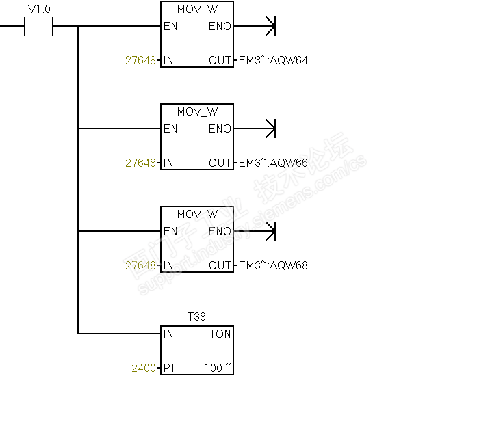 最近做了个几个空调项目,需要空调项目,逻辑是先开风阀(模拟量的)再开风机,我给阀的通道move了个27648,结果量输出通道只有6~7V,我新写了个测试通道的给27648量电压又很正常,10V左右,请大神指导下这是哪出了问题?